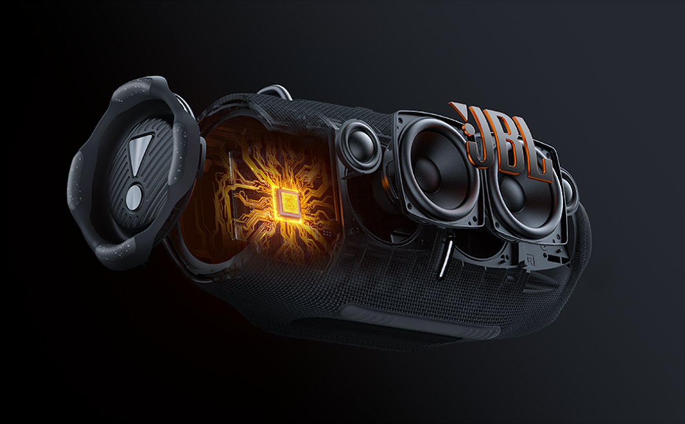 Tus aventuras auditivas pueden durar todo el día. Lleva el JBL Xtreme 4 contigo de una habitación a otra, a una fiesta en el jardín o a la playa. Con una duración de batería de hasta 24 horas, puedes reproducir música hasta que se ponga el sol (y vuelva a salir) antes de necesitar una recarga. Simplemente toca Playtime Boost para prolongar el tiempo de reproducción, lo que suma hasta 6 horas a la duración de la batería. Ajusta y optimiza el rendimiento para un sonido más alto y nítido.