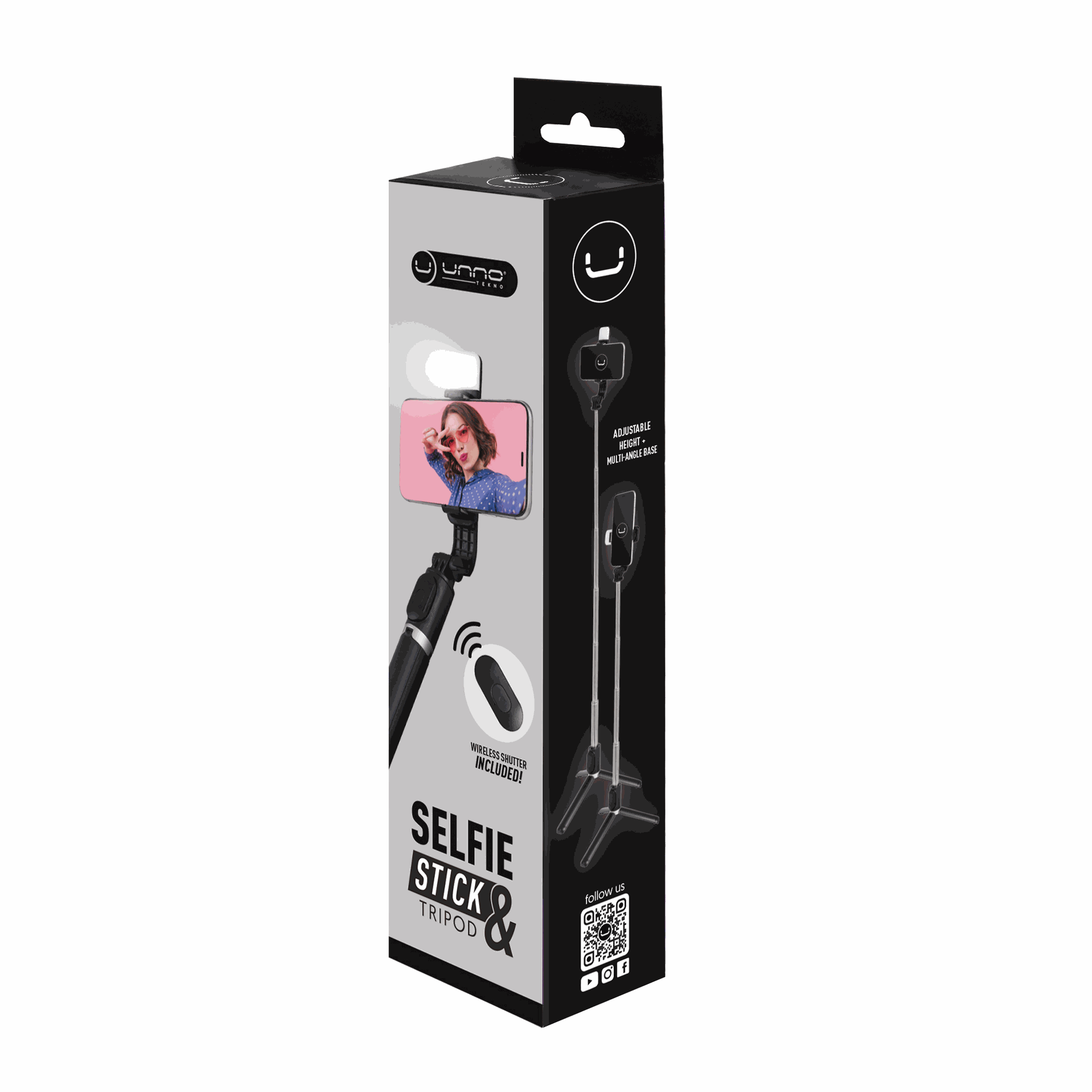 El Selfie Stick y Trípode UnnoTekno PH1804BK es el accesorio perfecto para quienes buscan versatilidad y estabilidad en un solo producto. Funciona como palo para selfies extensible y también como trípode plegable, ideal para fotos grupales, grabaciones, videollamadas o streaming.