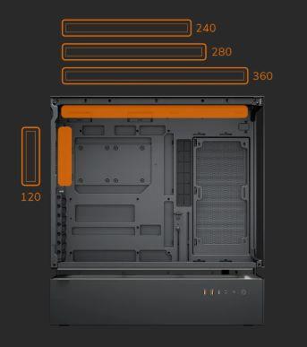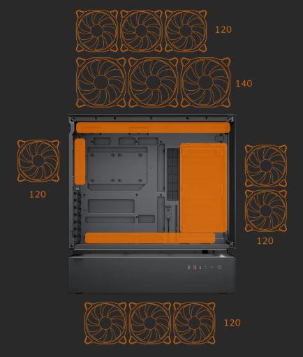 El CFV235 tiene una capacidad de ventilador de 3x120mm o 3x140mm en la parte superior, 3x120mm en el suelo de la cámara principal, 2 ventiladores de 120mm en la placa base y 1x120mm (preinstalado) en la parte trasera. El soporte de refrigeración líquida alcanza un máximo de 360 mm en la parte superior.