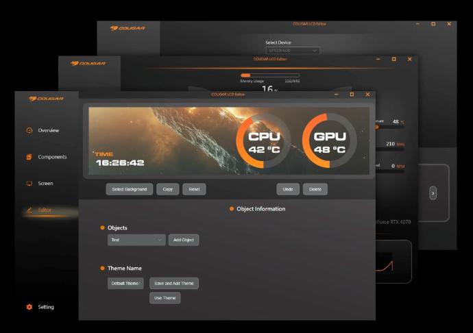 El CFV235 Mesh Vision integra un panel LCD TFT IPS de 9,16'' para monitorizar el sistema en tiempo real con una resolución ultra nítida de 1920 x 462 con una frecuencia de actualización de 60 Hz. No pierda de vista los datos críticos, desde las temperaturas hasta la velocidad de los ventiladores, al tiempo que personaliza la pantalla con contenido JPG, PNG, GIF o MP4, todo ello gestionado a través de un software de escritorio que actúa como central de comandos en directo.