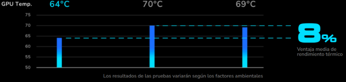 Evaluado a una temperatura ambiente de 19°C usando una configuración de estilo consumidor con los componentes de última generación, el OmnyX logra una ventaja media de rendimiento térmico del 8% respecto a los diseños convencionales de carcasa.