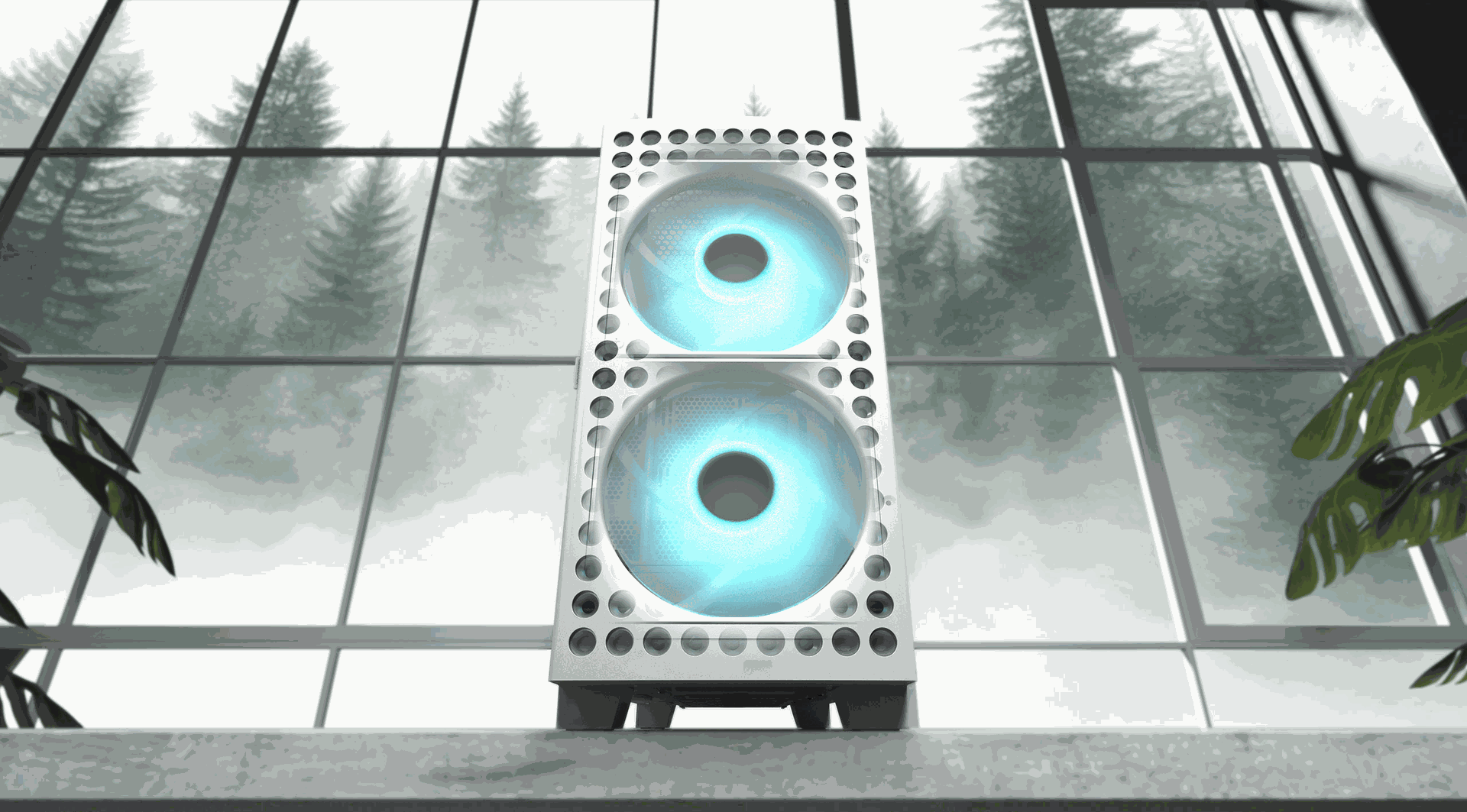 Dos potentes ventiladores frontales de refrigeración PWM de 180 mm mantienen el sistema frío bajo cargas pesadas. Estos ventiladores están preinstalados para proporcionar un flujo de aire óptimo desde el primer momento, con velocidades que se modulan según las necesidades del sistema. El Airface ECO RGB también viene con un ventilador de escape trasero de 120 mm preinstalado.