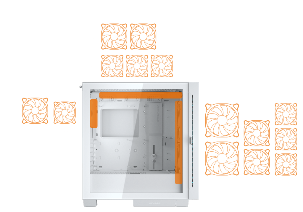 * Elija entre la parte frontal o superior para instalar un radiador de 360 mm.
