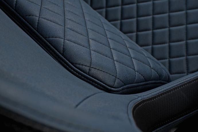 La Defensor S está tapizada en un material tipo cuero de alta calidad que ofrece un acabado suave al tacto, equilibrando durabilidad con una apariencia elegante. Este material avanzado es transpirable, resistente al desgaste y brinda una sensación natural y flexible al contacto.