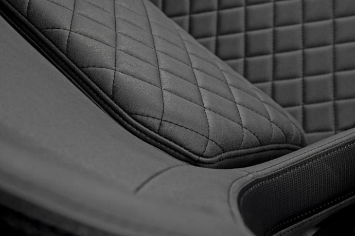Tapizado exclusivamente en un tejido similar al cuero, el Defensor S ofrece un acabado suave y táctil que equilibra durabilidad con un atractivo premium. Este material avanzado es transpirable, resiste el desgaste y se siente orgánico y flexible al tacto.