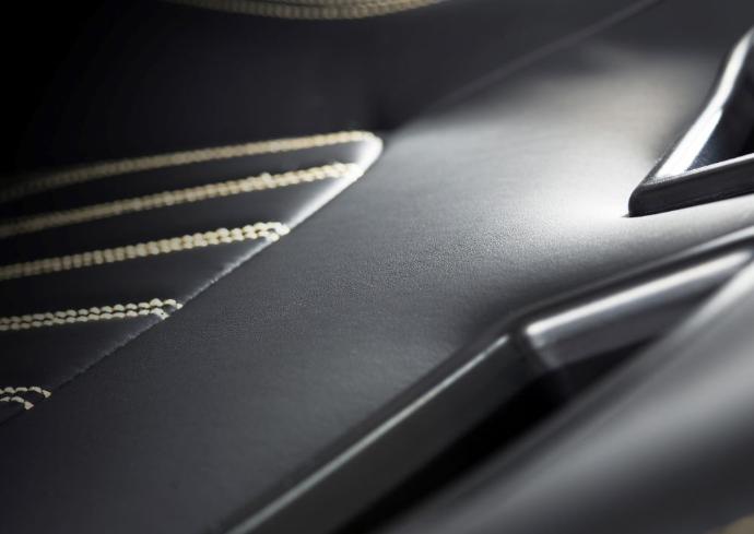 Una correa de sujeción discretamente oculta mantiene la almohada lumbar en su lugar sin interferir con la estética de líneas limpias; el respaldo y los bordes del asiento en cuero sintético texturizado añaden un toque de sofisticación y elegancia discreta.