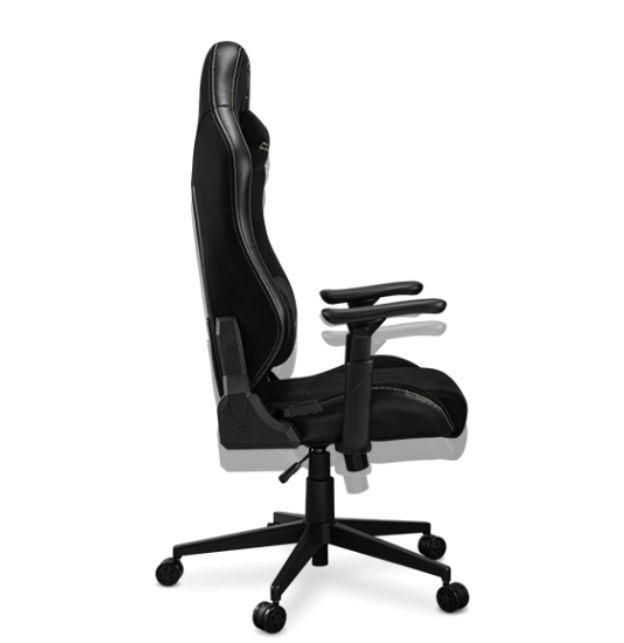 Los reposabrazos hiperrotan en un rango de 225°. Esto favorece posiciones de reposo más ergonómicas y cómodas para los brazos en juegos móviles o cuando la silla está en modo reclinable.