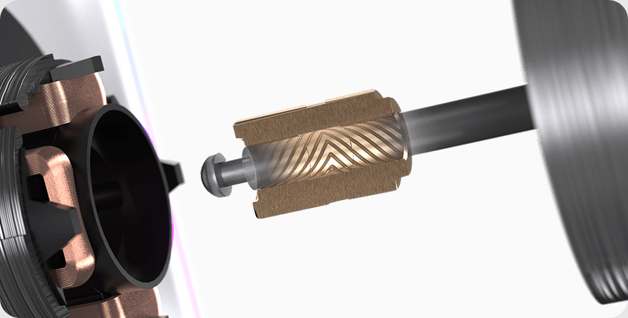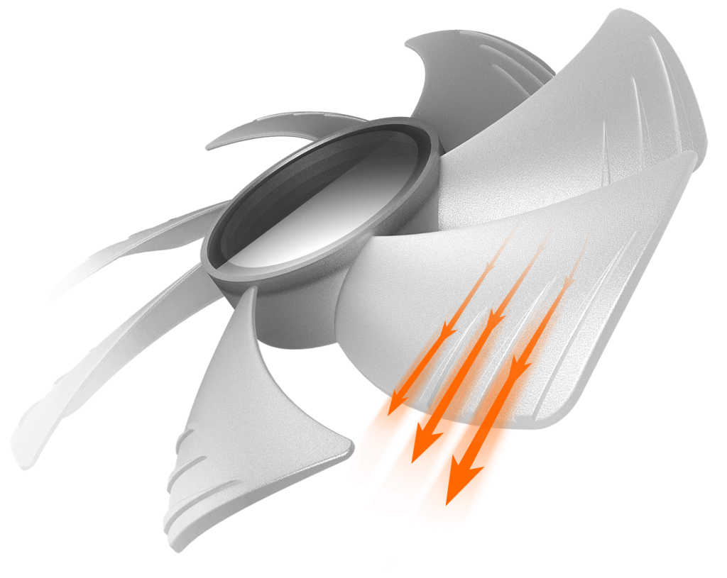 Los canales de flujo de aire mejorados separan el flujo en el lado de succión en corrientes mínimas, mejorando la eficiencia y reduciendo el ruido.