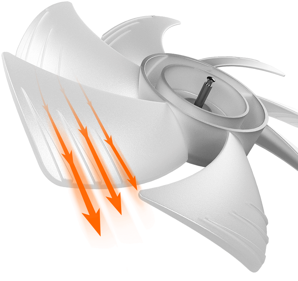 Los canales de flujo de aire mejorados separan el flujo en el lado de succión en corrientes mínimas, mejorando la eficiencia y reduciendo el ruido.