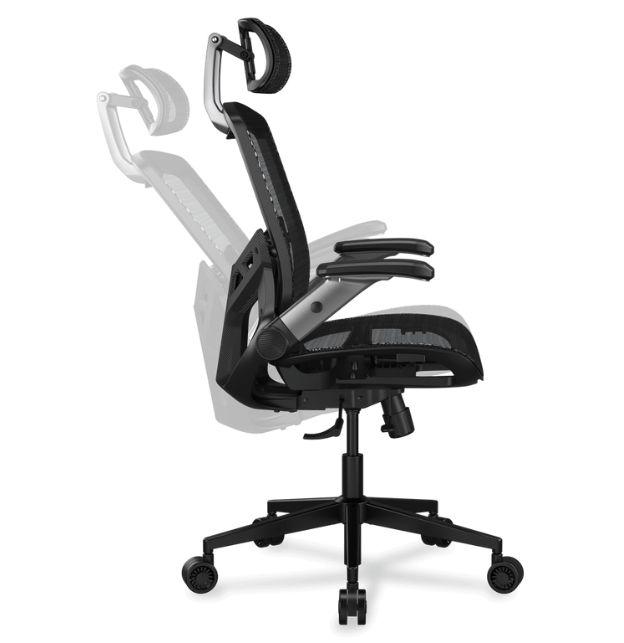 Los reposabrazos plegables 2D ofrecen soporte para varias posiciones de los brazos, mientras que el reposacabezas se ajusta para una comodidad personalizada.