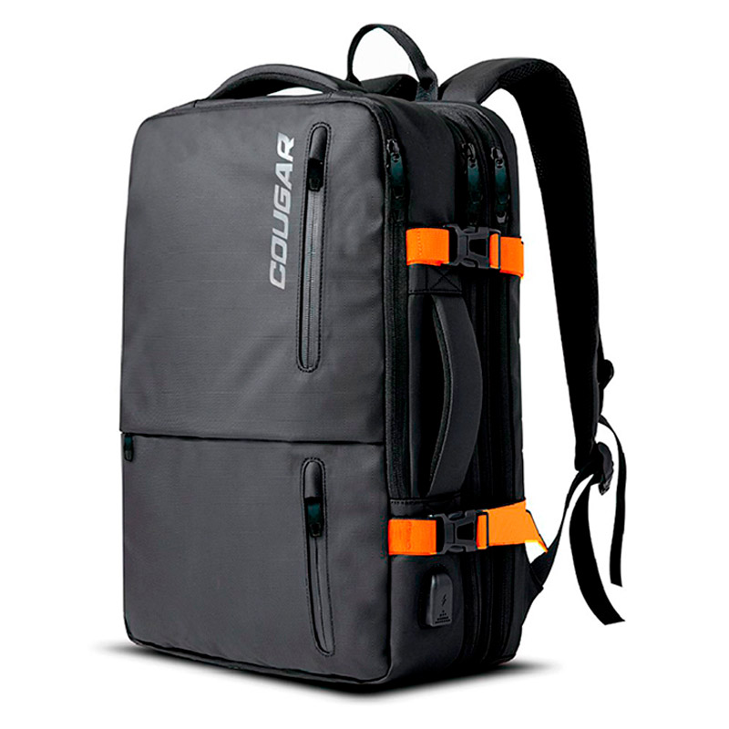 La Mochila Cougar Vanguard Travel 17" en color negro con detalles naranjas es la compañera ideal para quienes buscan funcionalidad, protección y un diseño robusto. Diseñada para transportar portátiles de hasta 17 pulgadas, cuenta con múltiples compartimentos que facilitan la organización y un diseño expandible que la hace perfecta para viajes o el día a día.