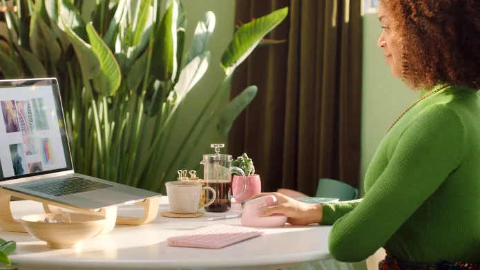 Con la parte superior del cuerpo más relajada, la mente puede concentrarse en las cosas realmente importantes. Trabaja apaciblemente mañana y tarde con clicks silenciosos y un botón rueda que se desliza suavemente y responde a toques ligerísimos.