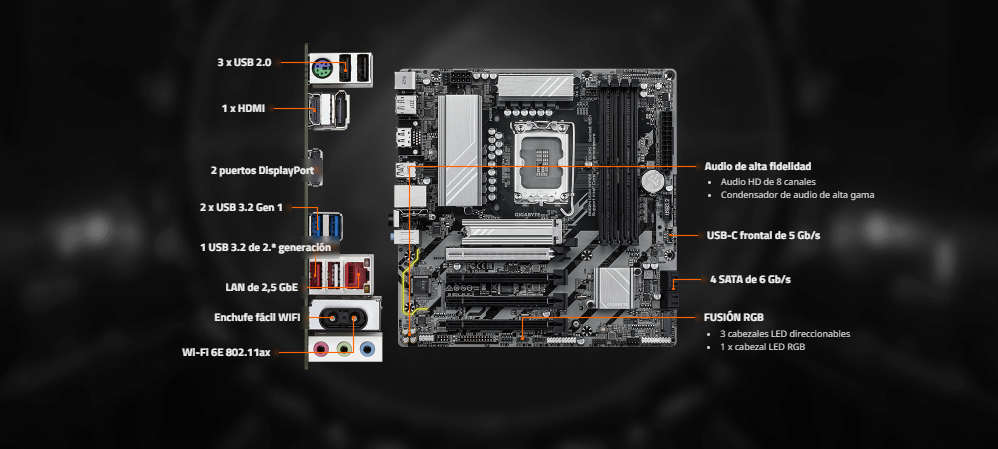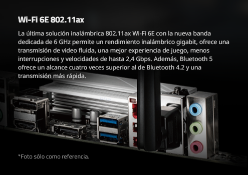 - Conexión en red rápida : LAN de 2,5 GbE y Wi-Fi 6E 802.11ax