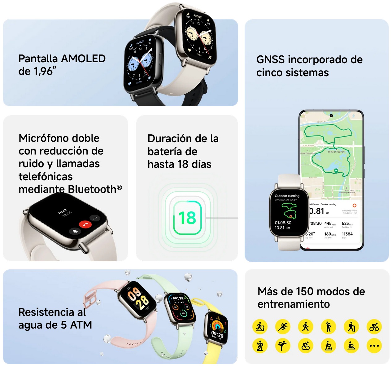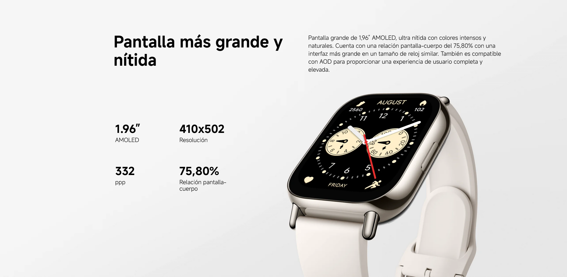 - Pantalla AMOLED 1.96"