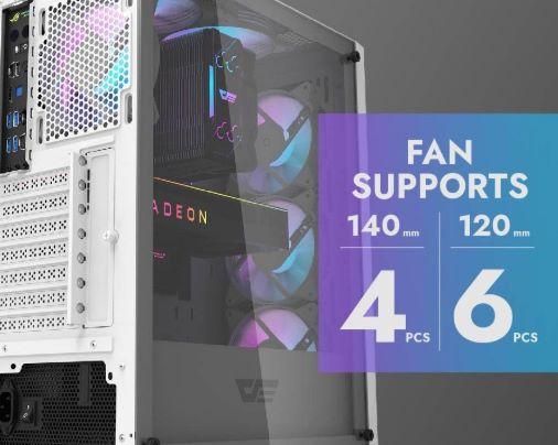 Soporta hasta 6 ventiladores y A.I.O. de 240 mm para un rendimiento óptimo de temperatura.