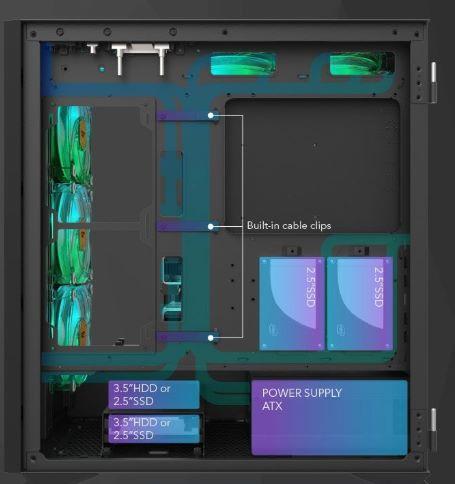 - Motherboard E-ATX, ATX, M-ATX, ITX