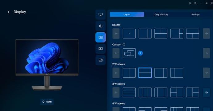 EasyArrange organiza las aplicaciones en las pantallas con particiones preestablecidas y permite personalizar hasta cinco ventanas, lo que mejora el trabajo multitarea. EasyArrange Memory guarda y restaura los perfiles de aplicaciones manualmente, según una programación o al iniciar el equipo.