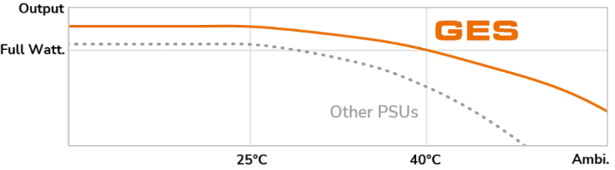 El diseño LLC, DC-DC y Tri-Sense (3,3 V, 5 V y 12 V) del GES proporciona salidas de alta calidad para un funcionamiento ultraestable.