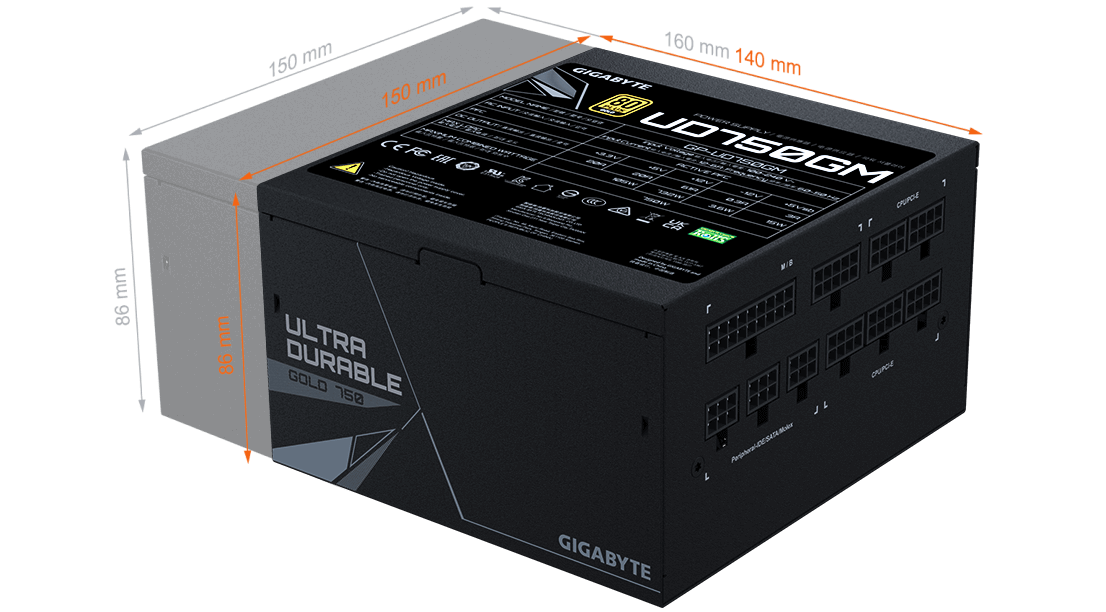 Con la ayuda de las excelentes capacidades de diseño de los ingenieros y la tecnología de disipación de calor en varios productos de hardware, y el uso de materiales de mayor calidad, GIGABYTE ha reducido la longitud de la fuente de alimentación a unos increíbles 140 mm, por lo que se puede instalar fácilmente en cualquier chasis sin restricciones de espacio.