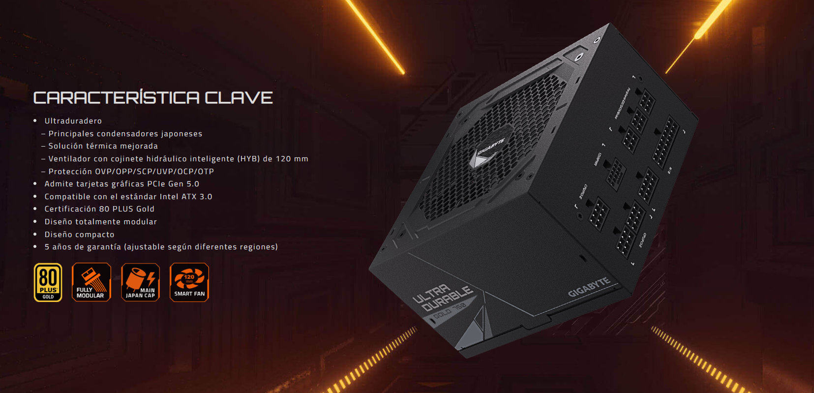 GP-UD750GM PG5 GUS1Fuente De Poder 750W Gigabyte UD750GM PG5 80 Plus Oro