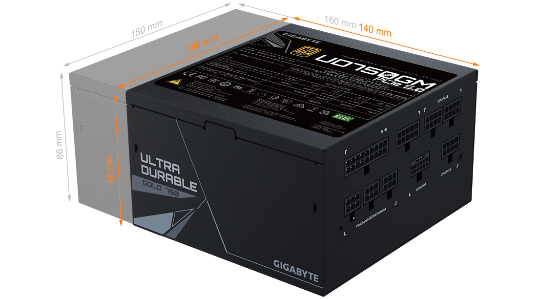 Con la ayuda de las excelentes capacidades de diseño de los ingenieros y la tecnología de disipación de calor en varios productos de hardware, y el uso de materiales de mayor calidad, GIGABYTE ha reducido la longitud de la fuente de alimentación a unos increíbles 140 mm, por lo que se puede instalar fácilmente en cualquier chasis sin restricciones de espacio.