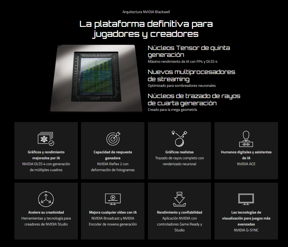 - Desarrollado con la arquitectura NVIDIA Blackwell y DLSS 4