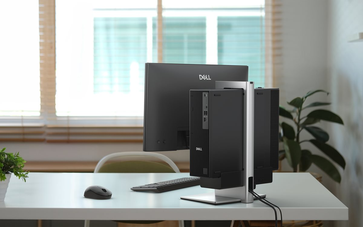 Colóquelo en posición vertical sobre un escritorio u horizontal para soportar un monitor y ahorrar espacio valioso en el escritorio. Manténgalo en condiciones máximas con el filtro contra polvo opcional para proteger los componentes y reducir el desorden de cables con la cubierta de cables para Dell Pro pequeño opcional.