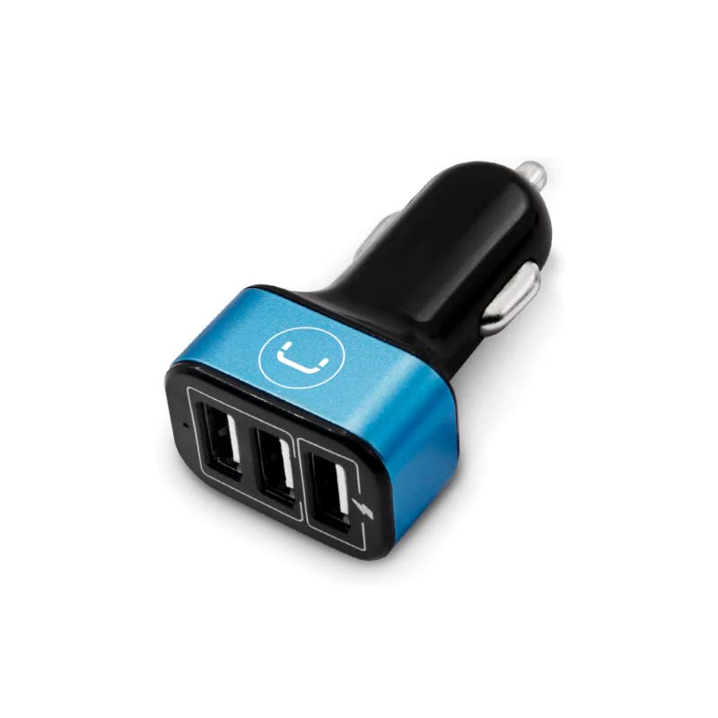 PW5022BKCargador Unno Tekno para Carro Triple USB-A 6.0A Negro/Celeste