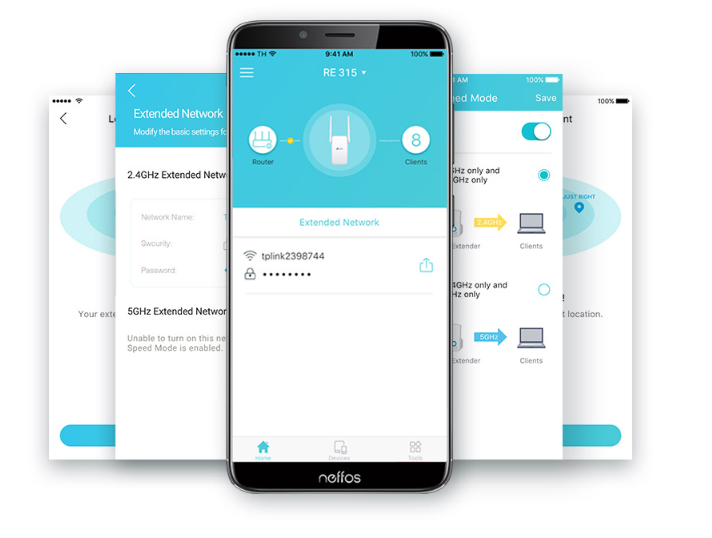 Configura y administra la red Wi-Fi a través de la App TP-Link Tether desde el teléfono (Android, iOS). Compatible con repetidores Wi-Fi y routers TP-Link..