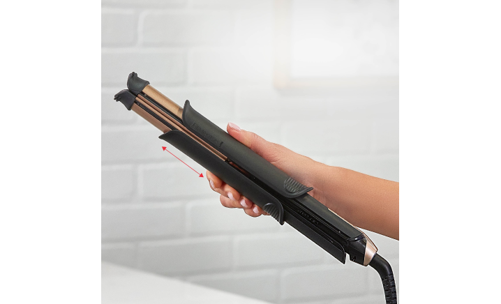 Modo de rizado: barril de 32 mm de diámetro. En el modo de rizado, puedes bloquear las placas o usar el barril para transformar la plancha en un rizador. El barril grueso crea ondas suaves y playeras, mientras que el revestimiento de cerámica antideslizante asegura que el mechón se mantenga en su lugar, obteniendo resultados duraderos en una sola pasada.