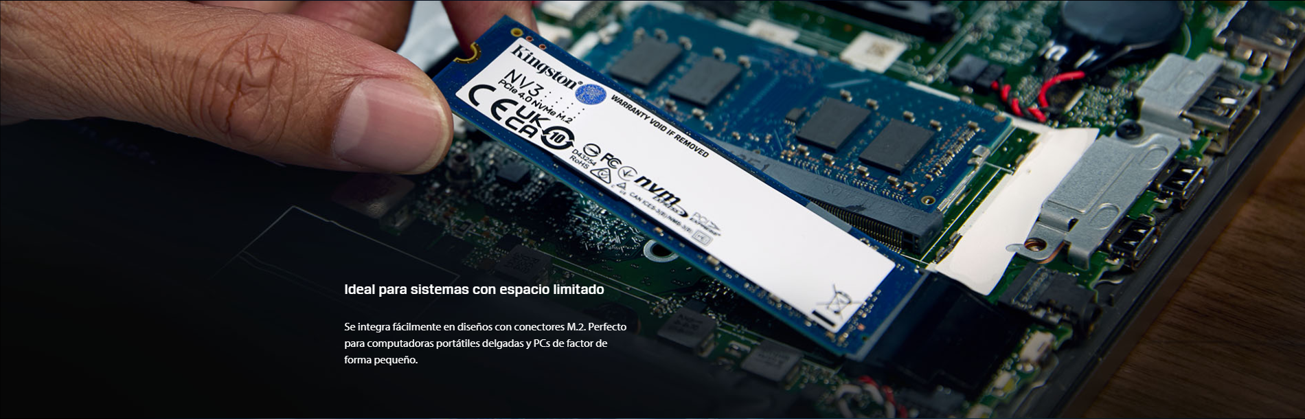 Kingston’s NV3 PCIe 4.0 NVMe SSD es una solución de almacenamiento de última generación alimentada por un controlador NVMe 4x4 Gen, que ofrece velocidades de lectura/escritura de hasta 6.000/5.000MB/seg. Ofrece un menor consumo de energía y reduce el calor, optimizando el rendimiento de tu sistema sin comprometer el valor. El diseño compacto de una sola cara M.2 2280 (22x80 mm) amplía el almacenamiento hasta 4 TB conservando espacio para otros componentes. Vive las velocidades de NVMe con NV3.