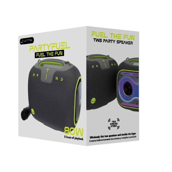SP9437GYBocina Bluetooth Unno Tekno SP9437GY PartyFuel TWS 80W IPX6 Gris