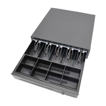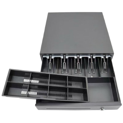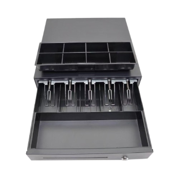 El VT-POS-405 de Business Solutions es un cajón de efectivo robusto, ideal para puntos de venta minoristas con 5 compartimentos para billetes y 8 para monedas ajustables.